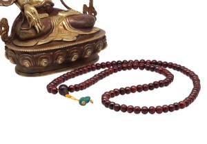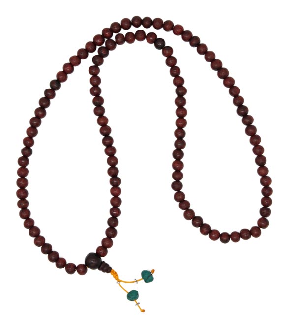 Gebetskette aus 108 Holzkügelchen.