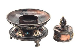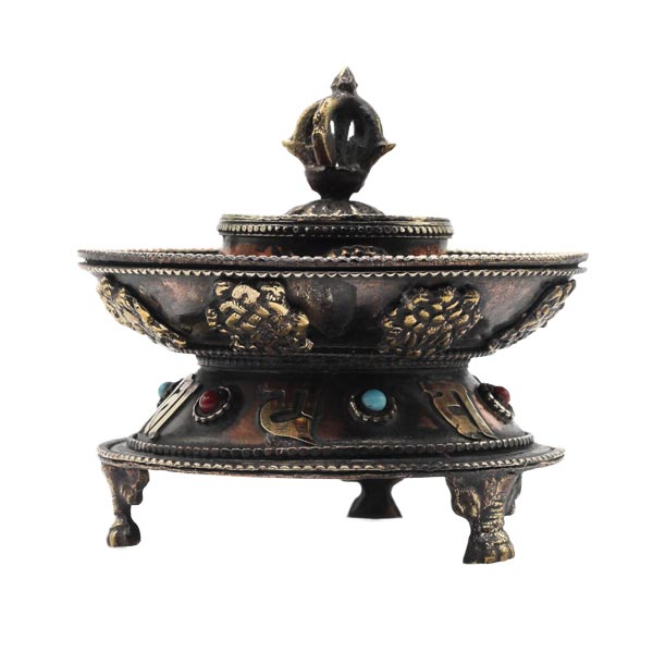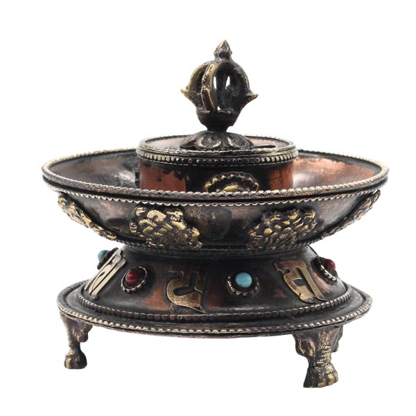 Runder Räucherstäbchenhalter aus Nepal.