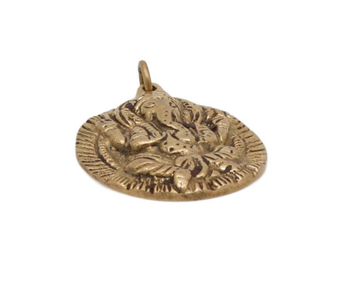 Auf dem Messing-Anhänger ist die hinduistische Gottheit Ganesh dargestellt – der beliebte Elefantengott, bekannt als Überwinder von Hindernissen und Bringer von Glück, Weisheit und Erfolg.