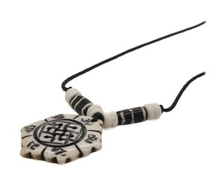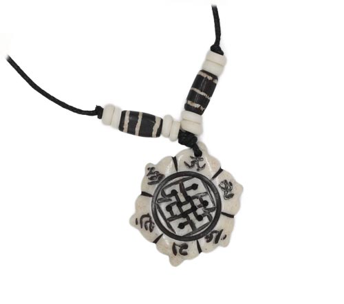 Im Zentrum des Anhängers ist der endlose Knoten, eines der acht buddhistischen Glückssymbole, den sogenannten