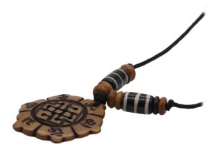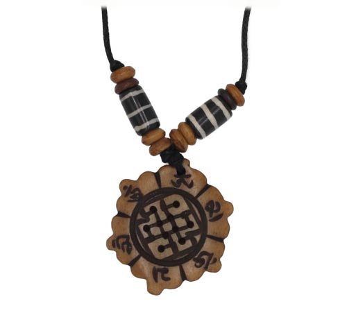 Im Zentrum des Anhängers ist der endlose Knoten, eines der acht buddhistischen Glückssymbole, den sogenannten