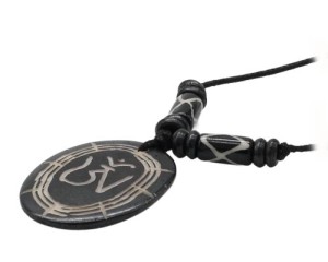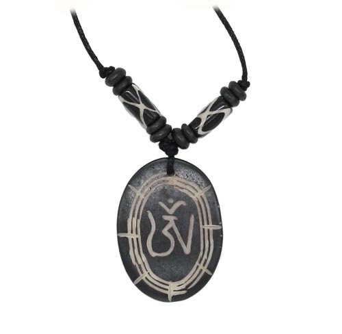 Om Anhänger mit schwarzem, in der Größe verstellbarem, Textilband (Halskette).