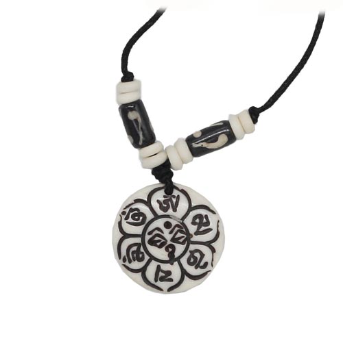 Om Mani Padme Hum Anhänger mit schwarzem, in der Größe verstellbarem,