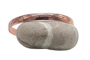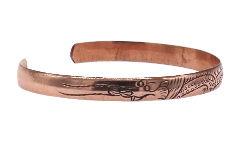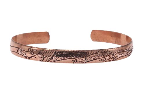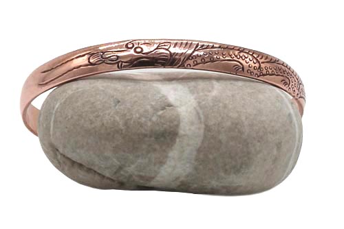 Armreif aus Kupfer, mit von Hand in die Oberseite graviertem Drachen. Sehr schöner, in Handarbeit hergestellter Armreif aus einer kleinen Manufaktur in Patan, Tal von Kathmandu, Nepal.