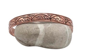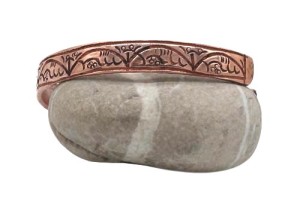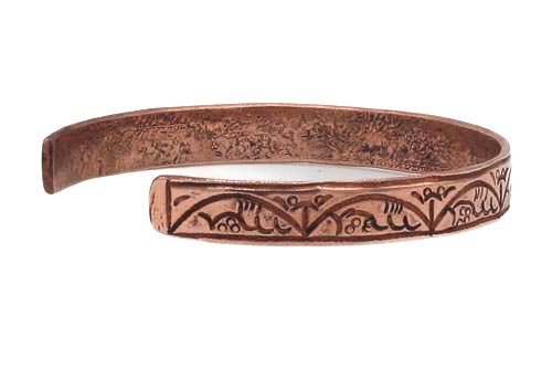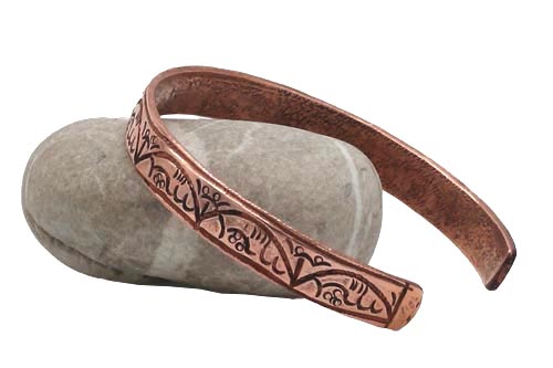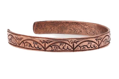 Armreif aus Kupfer, mit von Hand in die Oberseite gravierten Mustern im traditionellen Nepal-Design. Sehr schöner, in Handarbeit hergestellter Armreif aus einer kleinen Manufaktur