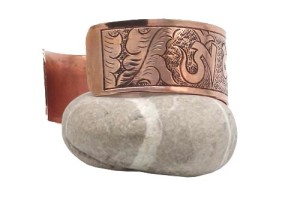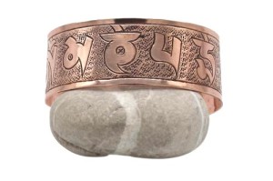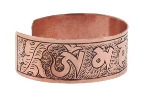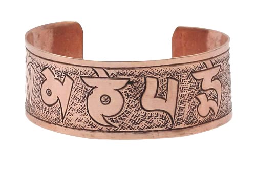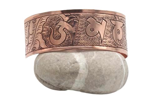 Armreif aus Kupfer, mit von Hand in die Oberseite gravierten Om Mani Padme Hum, das übersetzt soviel, wie "Du Juwel in der Lotusblüte" bedeutet. Sehr schöner, in Handarbeit hergestellter Armreif aus einer kleinen Manufaktur in Patan, Tal von Kathmandu, Nepal.