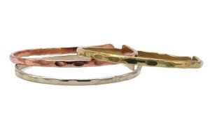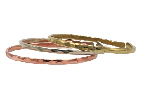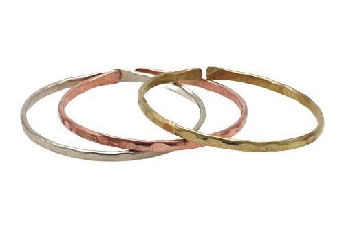 Je ein Armreif in Kupfer, Messing und Weißmetall.