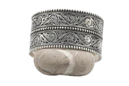 Da der Armreif komplett in Handarbeit hergestellt wird, ist jedes Stück ein Original.