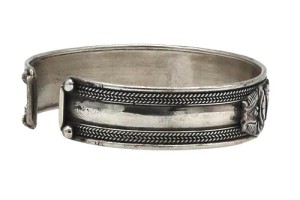 Der Armreif hat eine Breite von ca. 1,6 cm. Gewicht etwa 25 g.