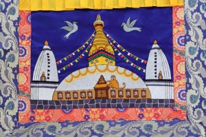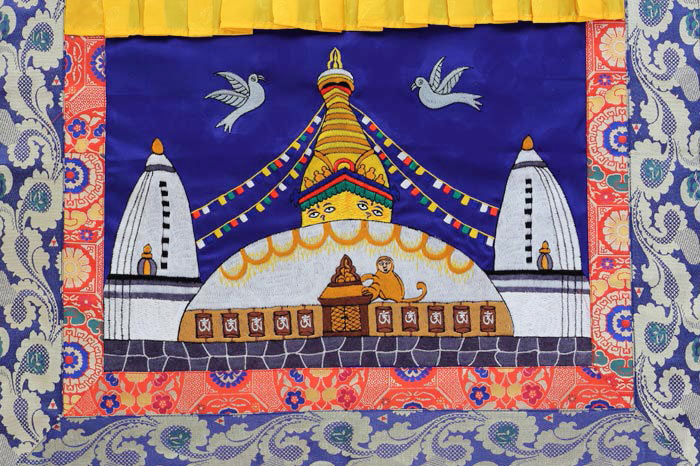 Handbestickter Swayambhunath Wandbehang aus Nepal – Ein Stück spiritueller Kunst für Ihr Zuhause